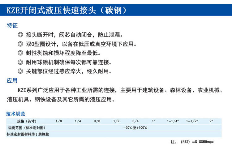 KZE開閉式液壓快速接頭(碳鋼)
